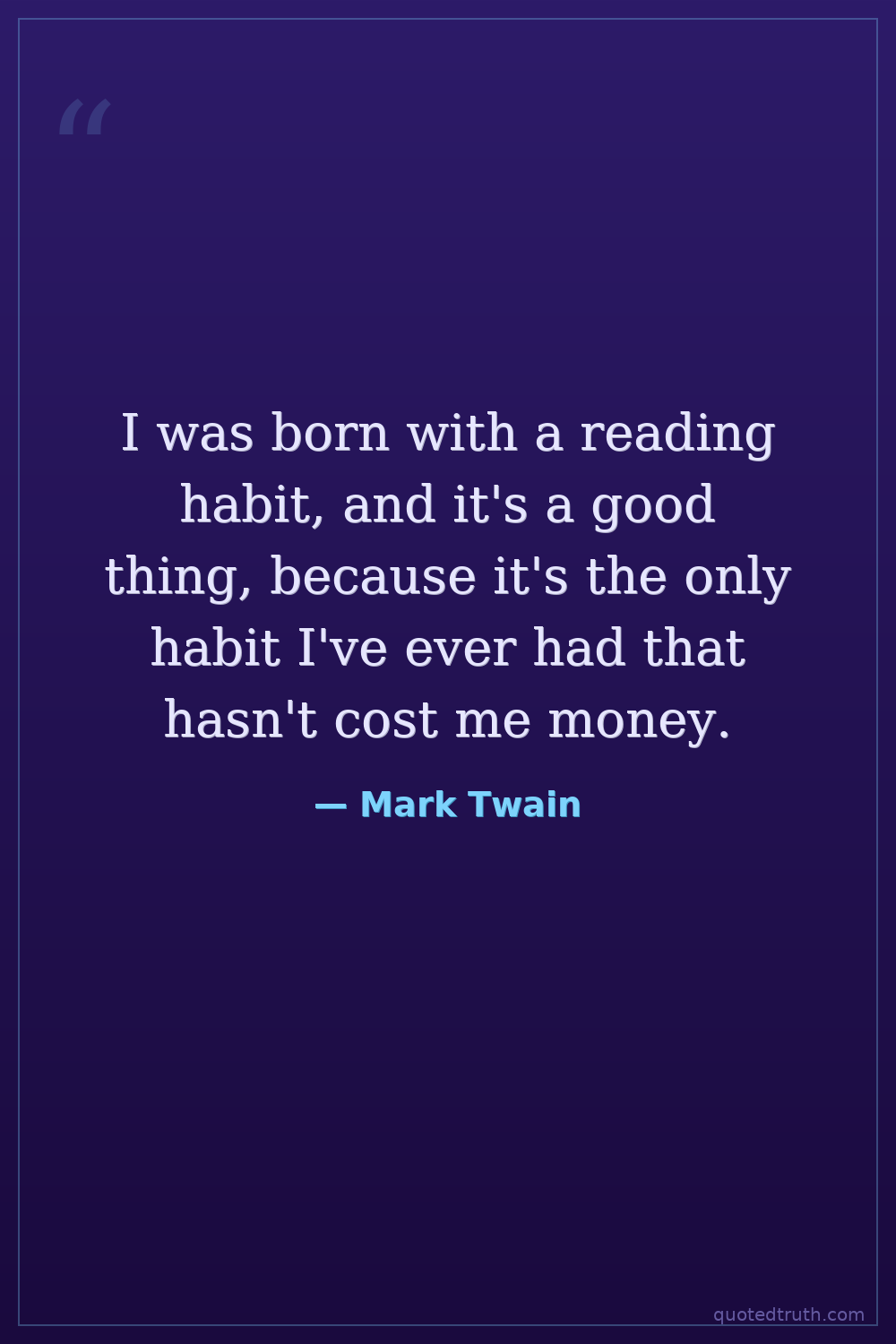 I was born with a reading habit, and it's a good thing, because it's the only habit I've ever had that hasn't cost me money.