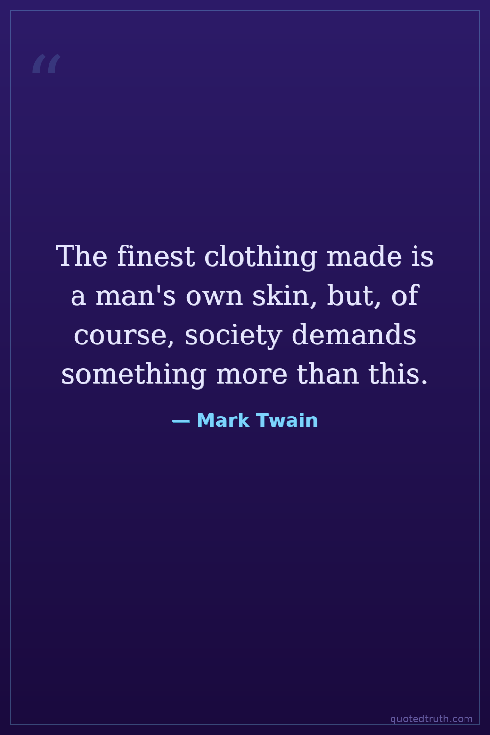 The finest clothing made is a man's own skin, but, of course, society demands something more than this.