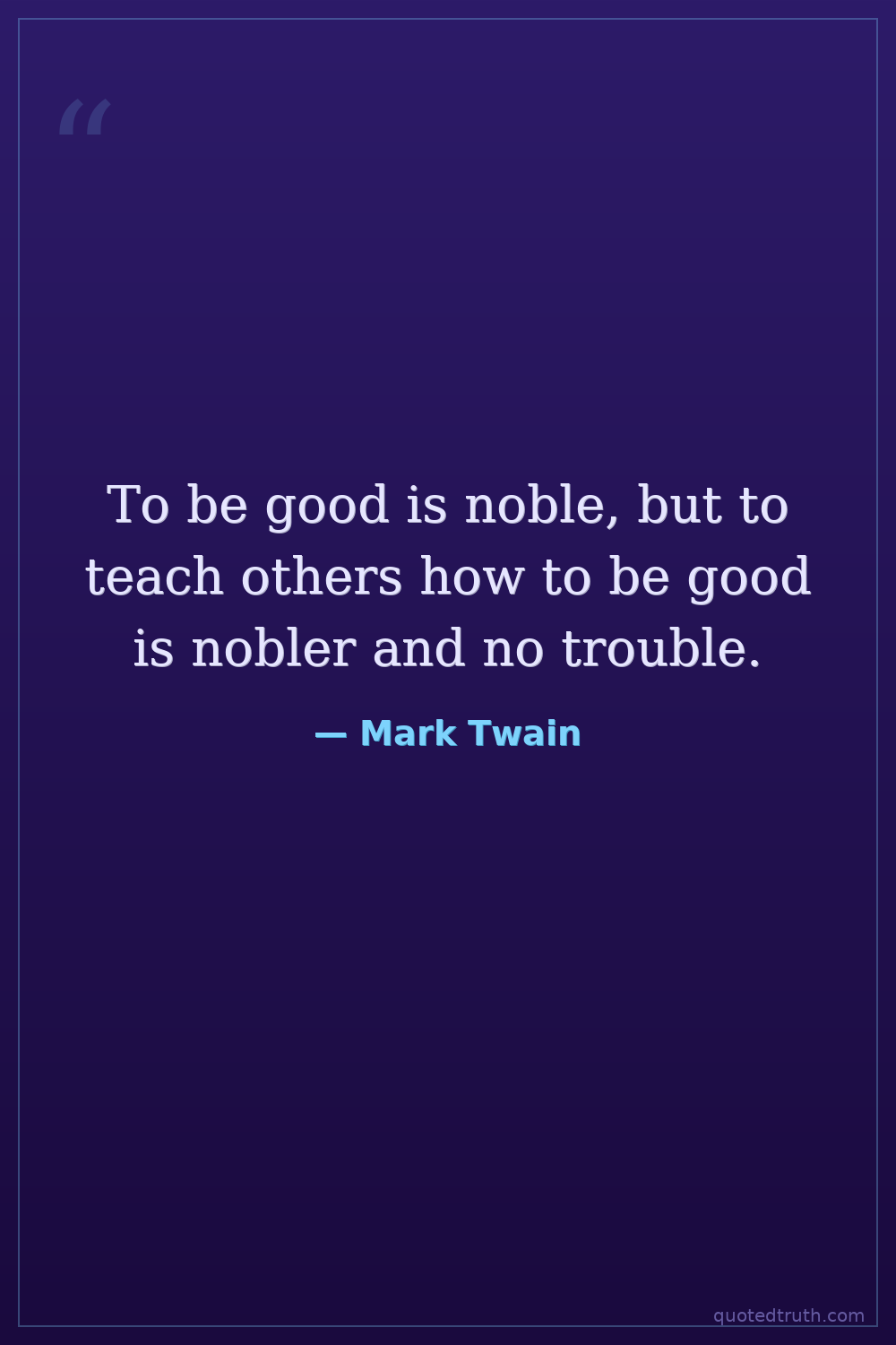 To be good is noble, but to teach others how to be good is nobler and no trouble.
