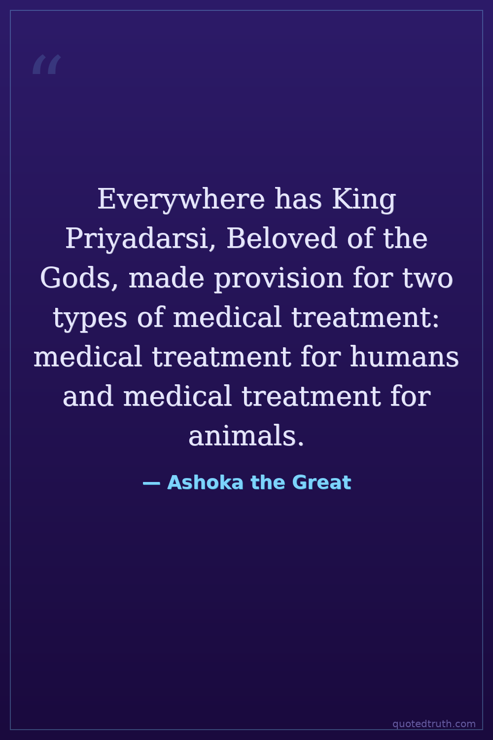 Everywhere has King Priyadarsi, Beloved of the Gods, made provision for two types of medical treatment: medical treatment for humans and medical treatment for animals.