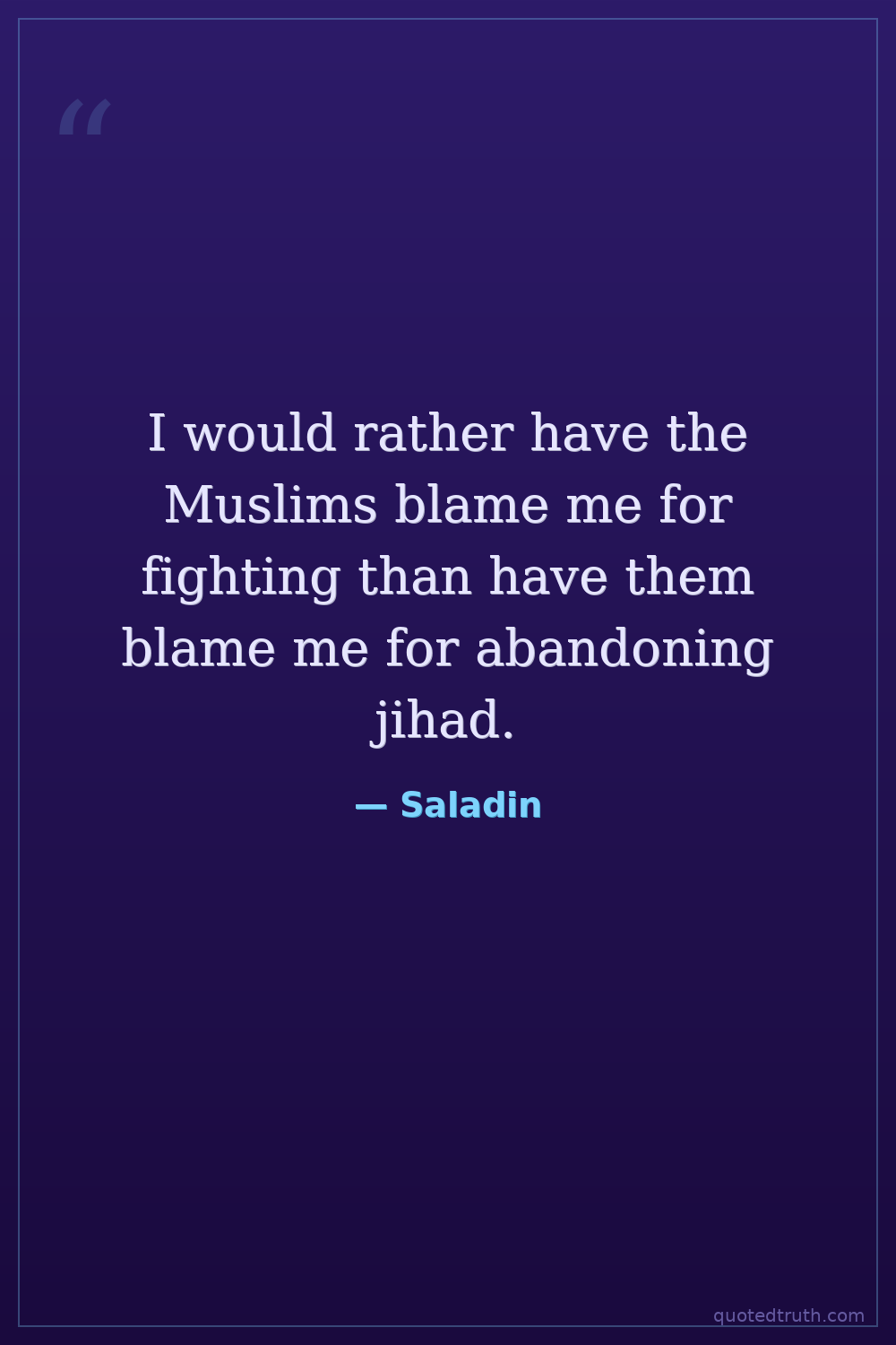 I would rather have the Muslims blame me for fighting than have them blame me for abandoning jihad.