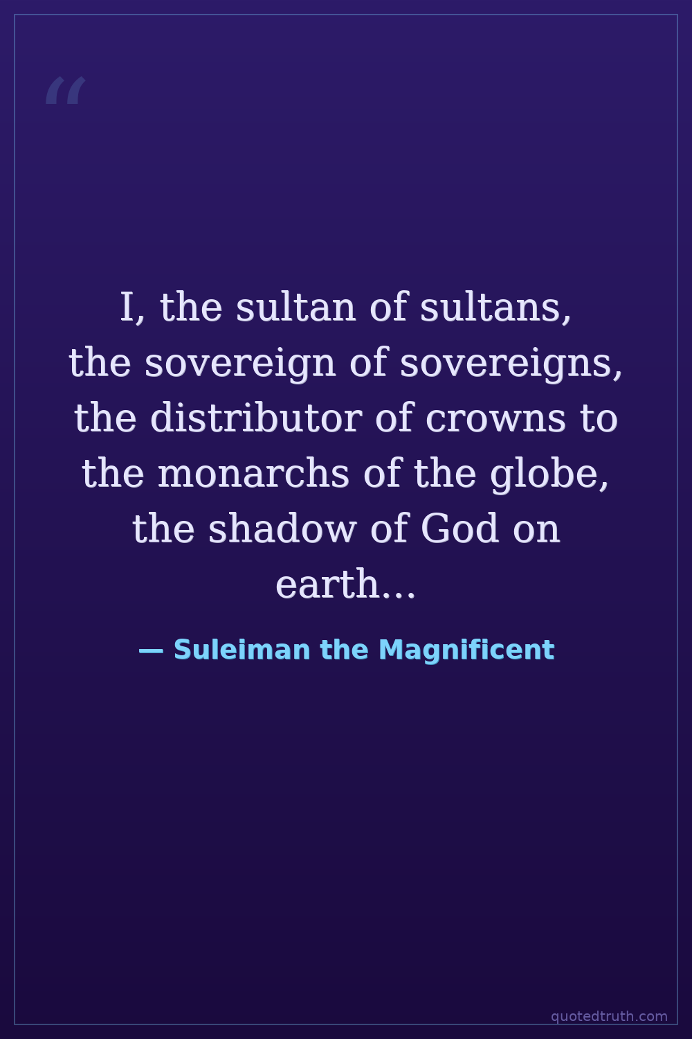 I, the sultan of sultans, the sovereign of sovereigns, the distributor of crowns to the monarchs of the globe, the shadow of God on earth...