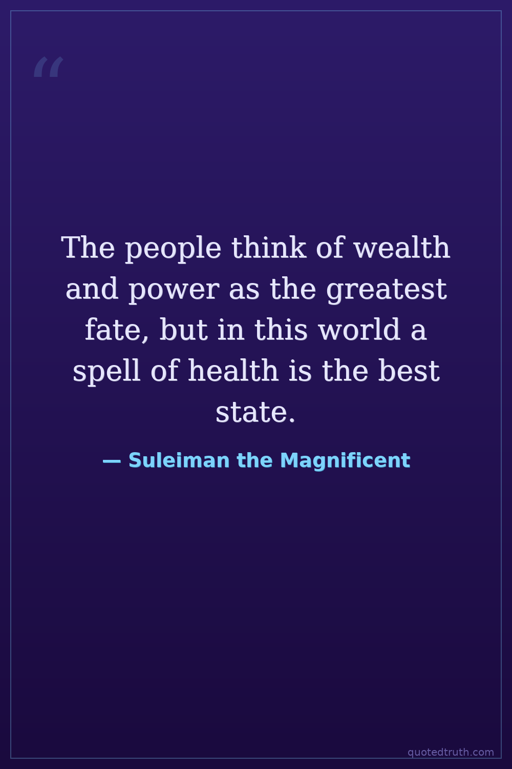 The people think of wealth and power as the greatest fate, but in this world a spell of health is the best state.