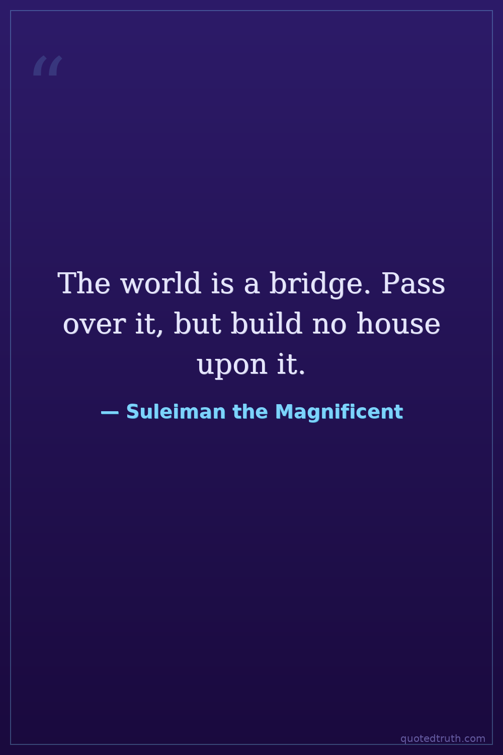 The world is a bridge. Pass over it, but build no house upon it.