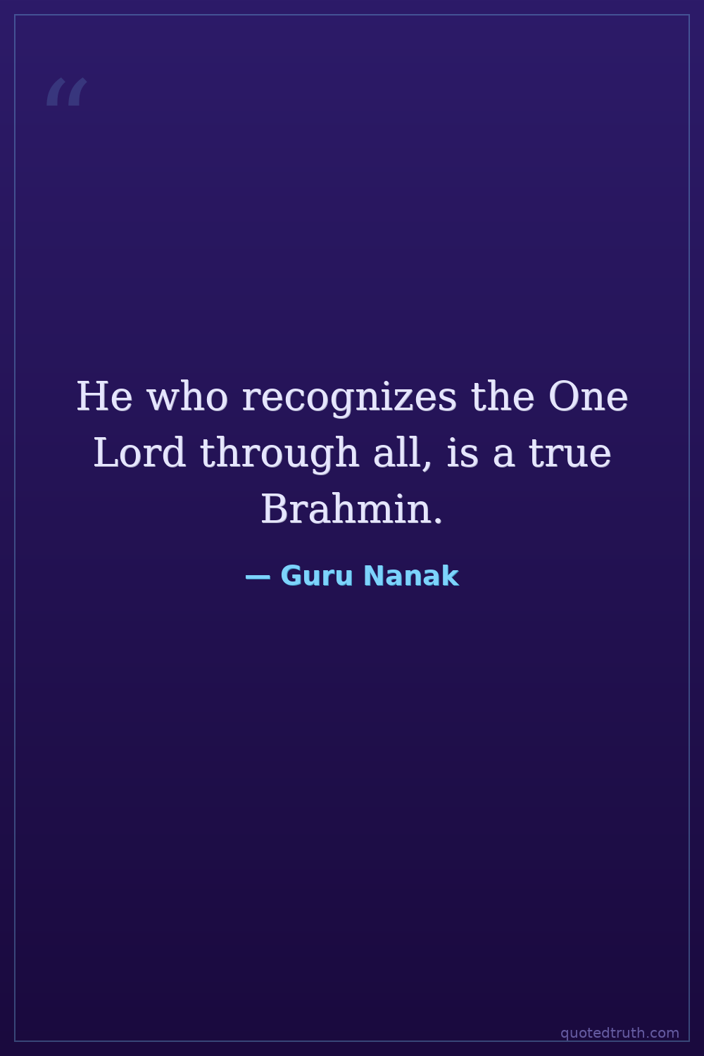 He who recognizes the One Lord through all, is a true Brahmin.