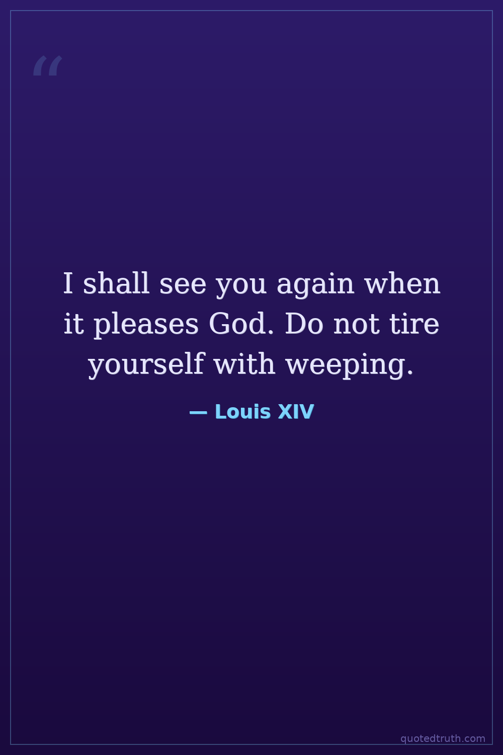 I shall see you again when it pleases God. Do not tire yourself with weeping.