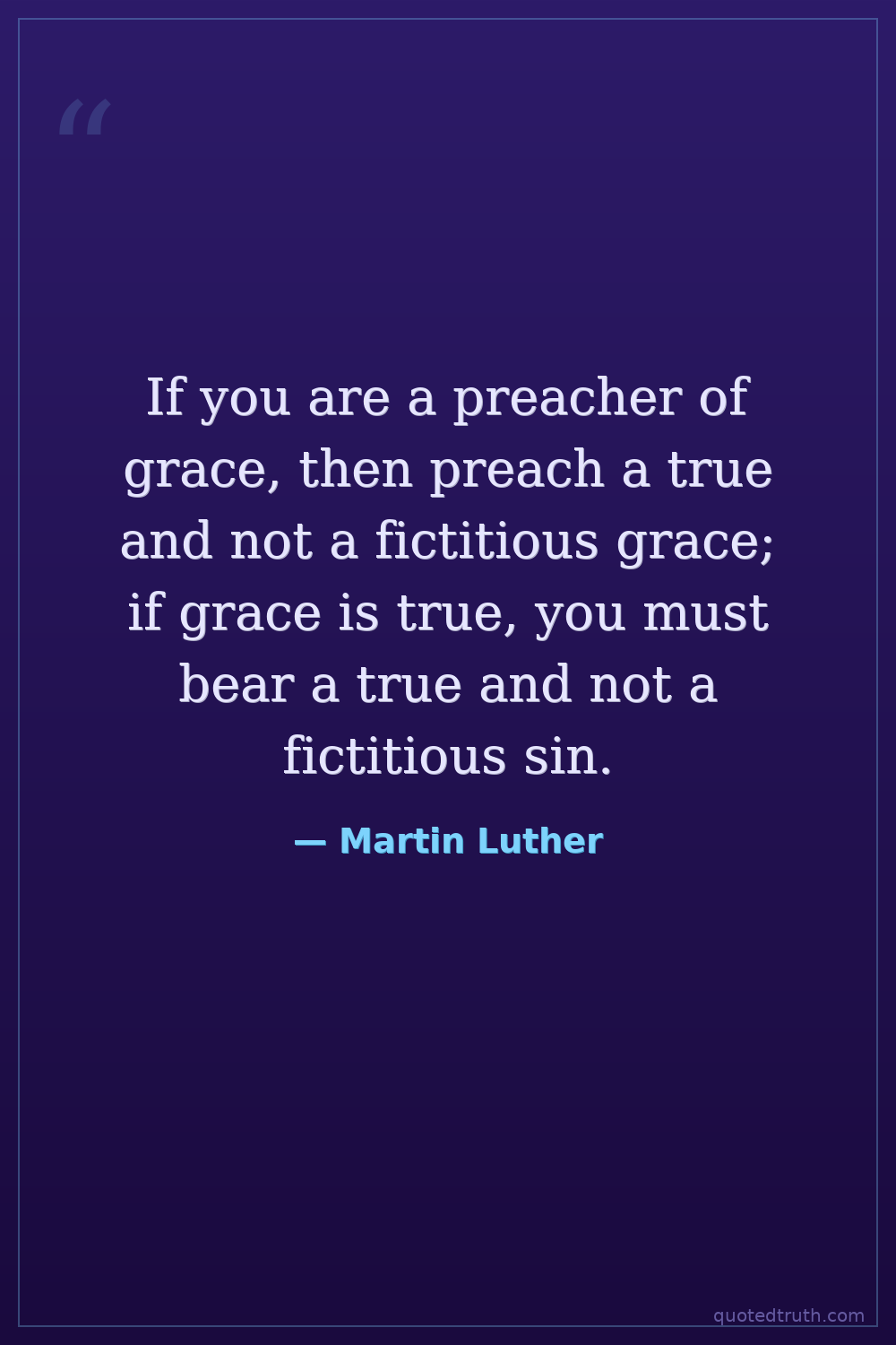 If you are a preacher of grace, then preach a true and not a fictitious grace; if grace is true, you must bear a true and not a fictitious sin.