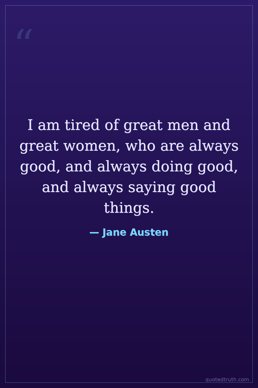 I am tired of great men and great women, who are always good, and always doing good, and always saying good things.