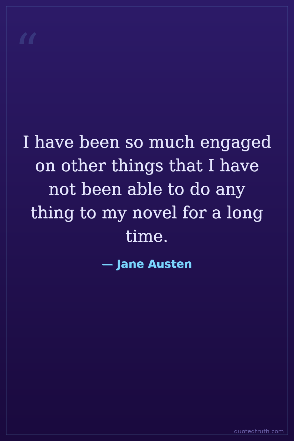 I have been so much engaged on other things that I have not been able to do any thing to my novel for a long time.