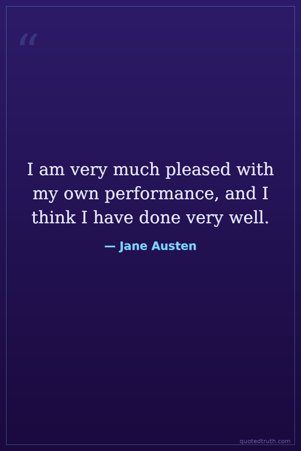 I am very much pleased with my own performance, and I think I have done very well.