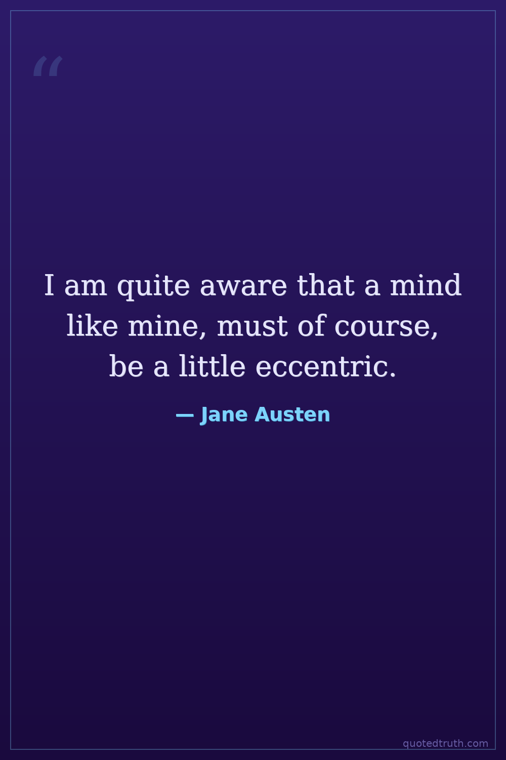 I am quite aware that a mind like mine, must of course, be a little eccentric.