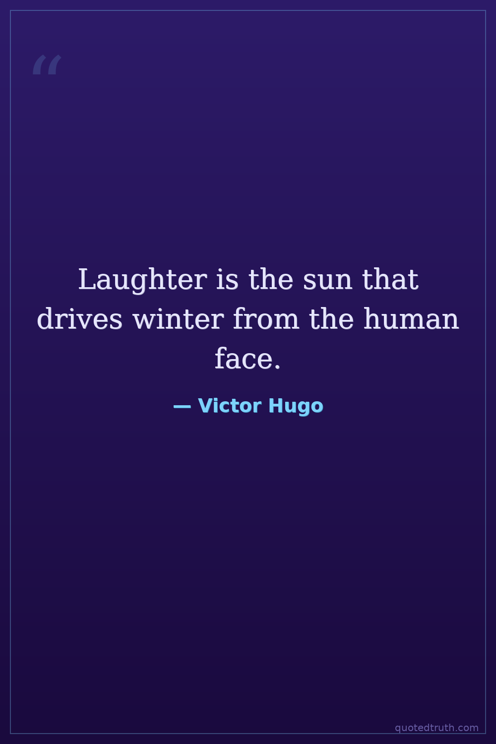 Laughter is the sun that drives winter from the human face.