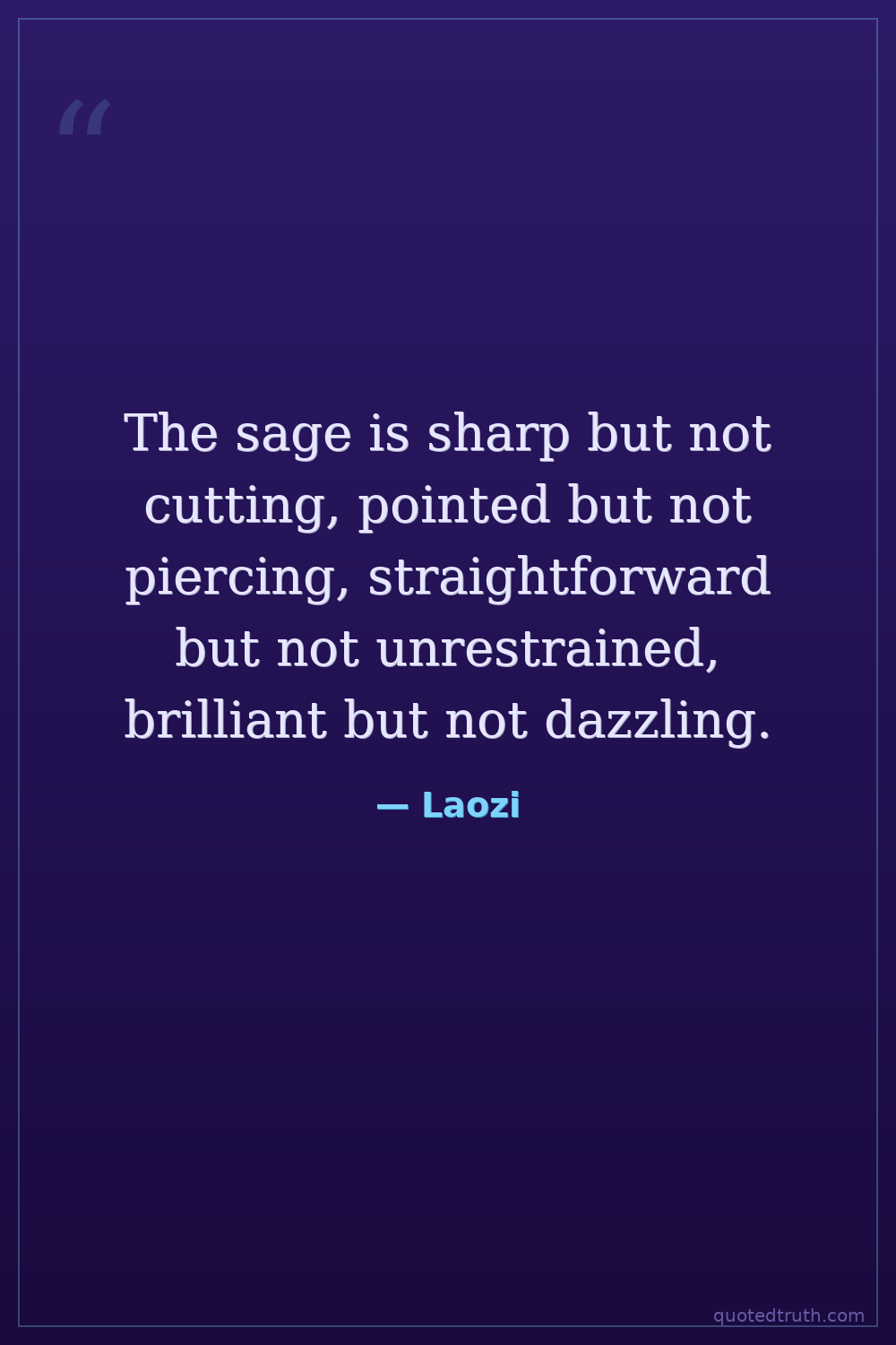 The sage is sharp but not cutting, pointed but not piercing, straightforward but not unrestrained, brilliant but not dazzling.