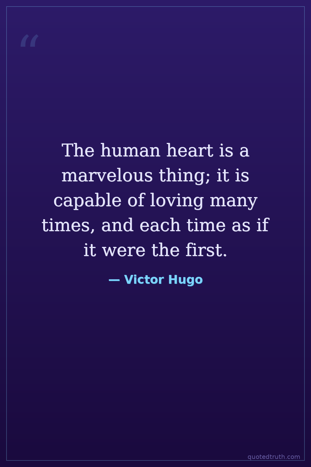The human heart is a marvelous thing; it is capable of loving many times, and each time as if it were the first.