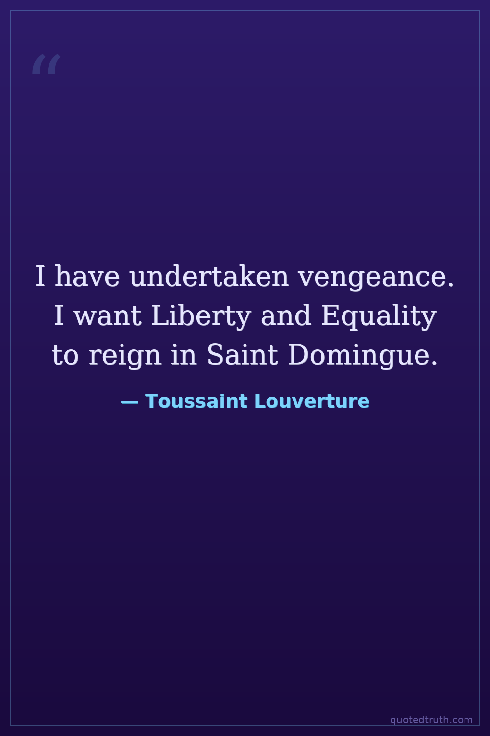 I have undertaken vengeance. I want Liberty and Equality to reign in Saint Domingue.