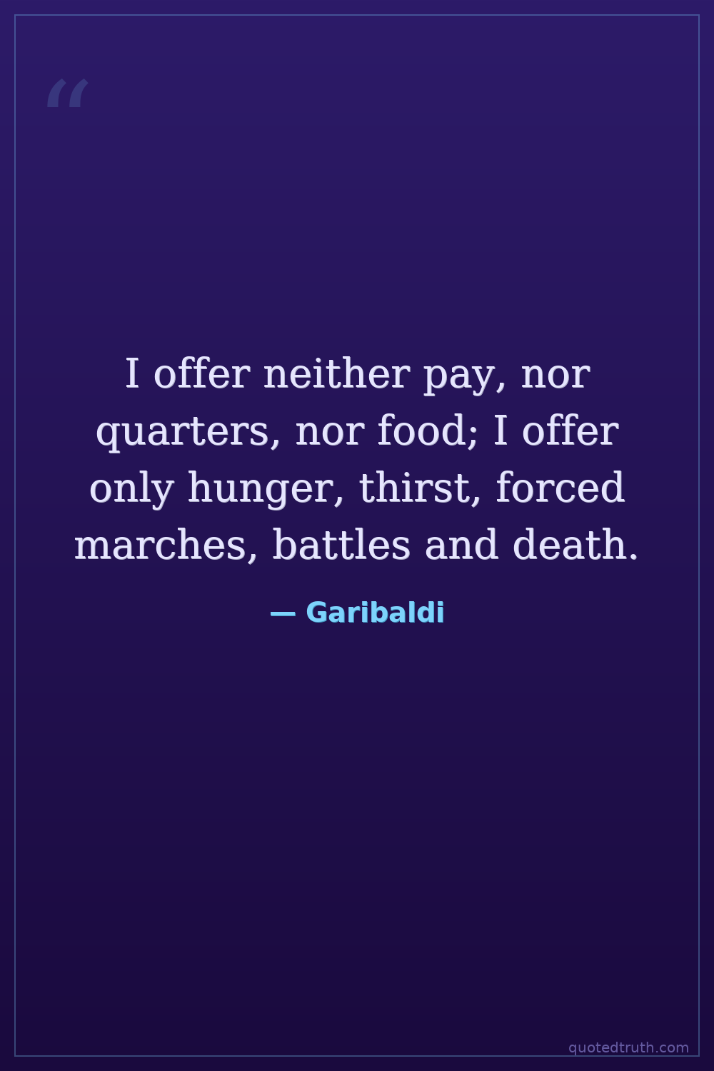 I offer neither pay, nor quarters, nor food; I offer only hunger, thirst, forced marches, battles and death.