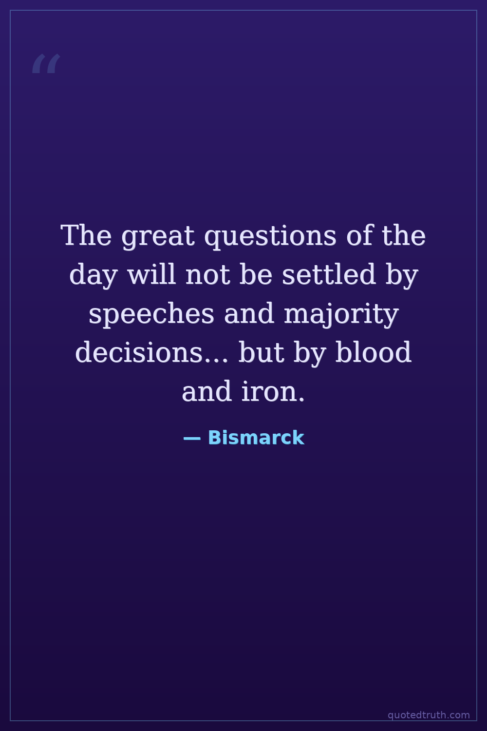 The great questions of the day will not be settled by speeches and majority decisions... but by blood and iron.
