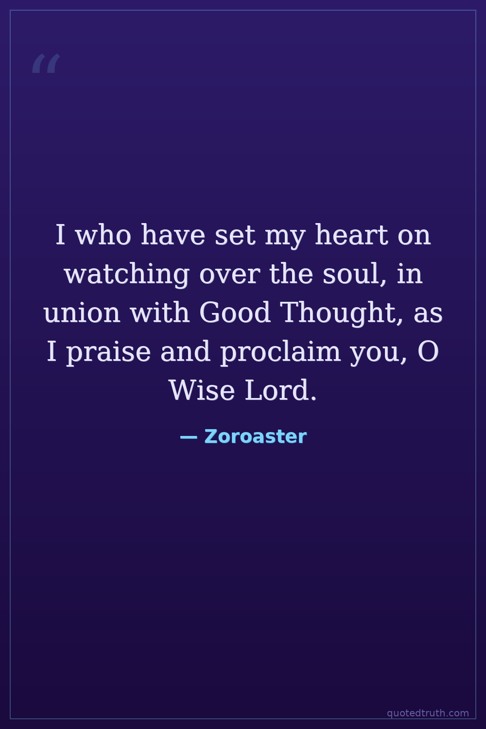 Philosophical"I will sing praises to You, O Ahura Mazda, with good thoughts and truthful words."