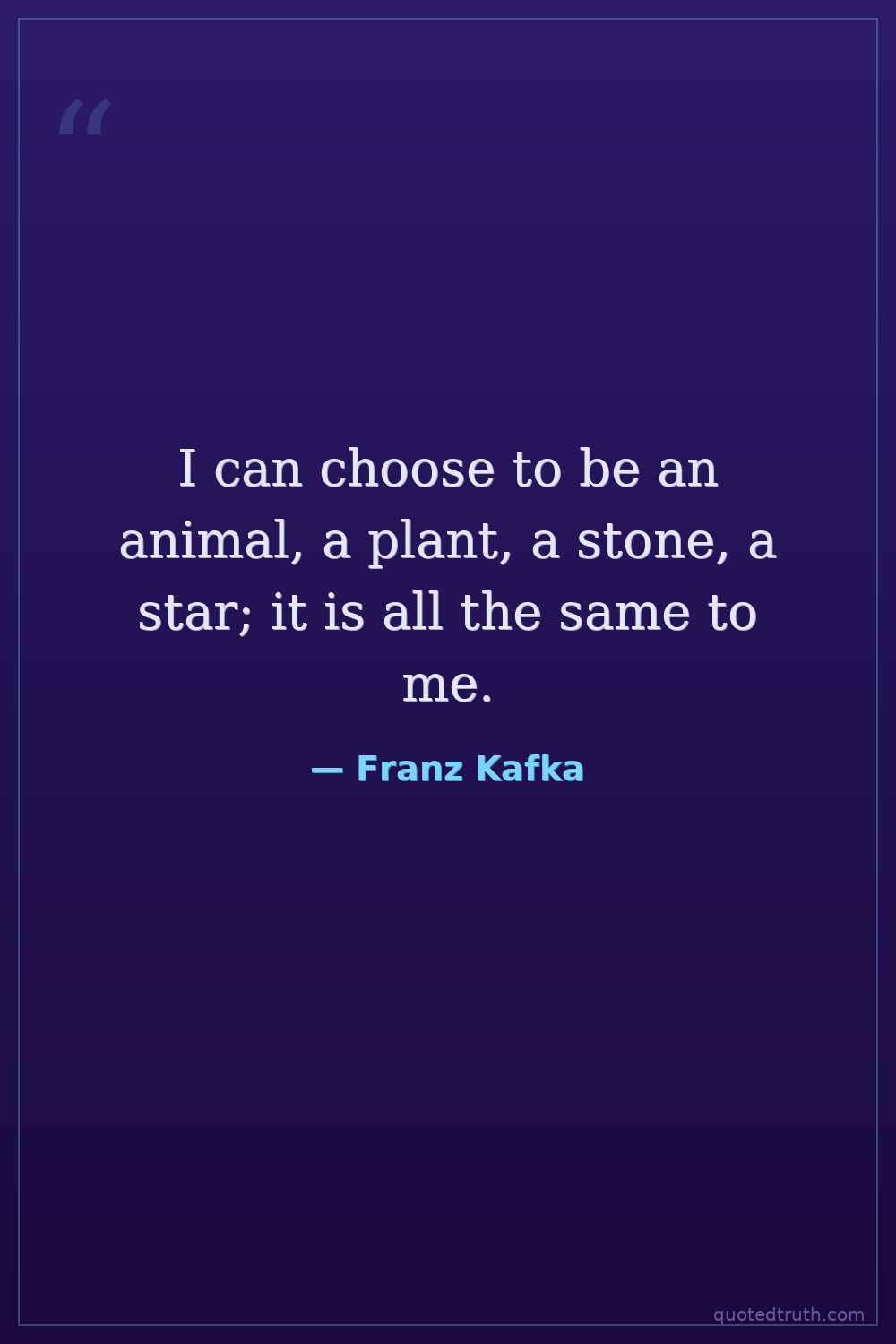 I can choose to be an animal, a plant, a stone, a star; it is all the same to me.