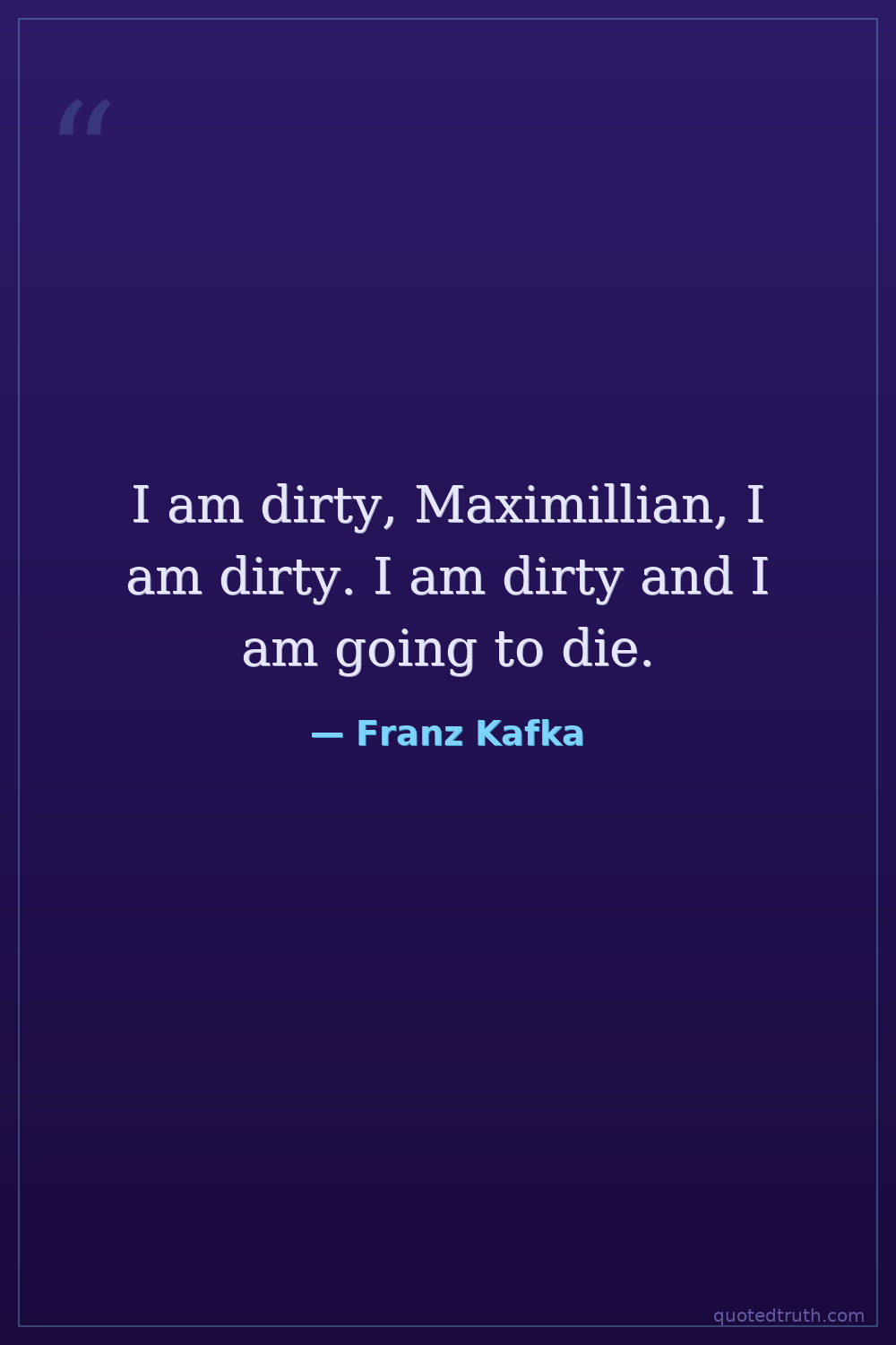 I am dirty, Maximillian, I am dirty. I am dirty and I am going to die.