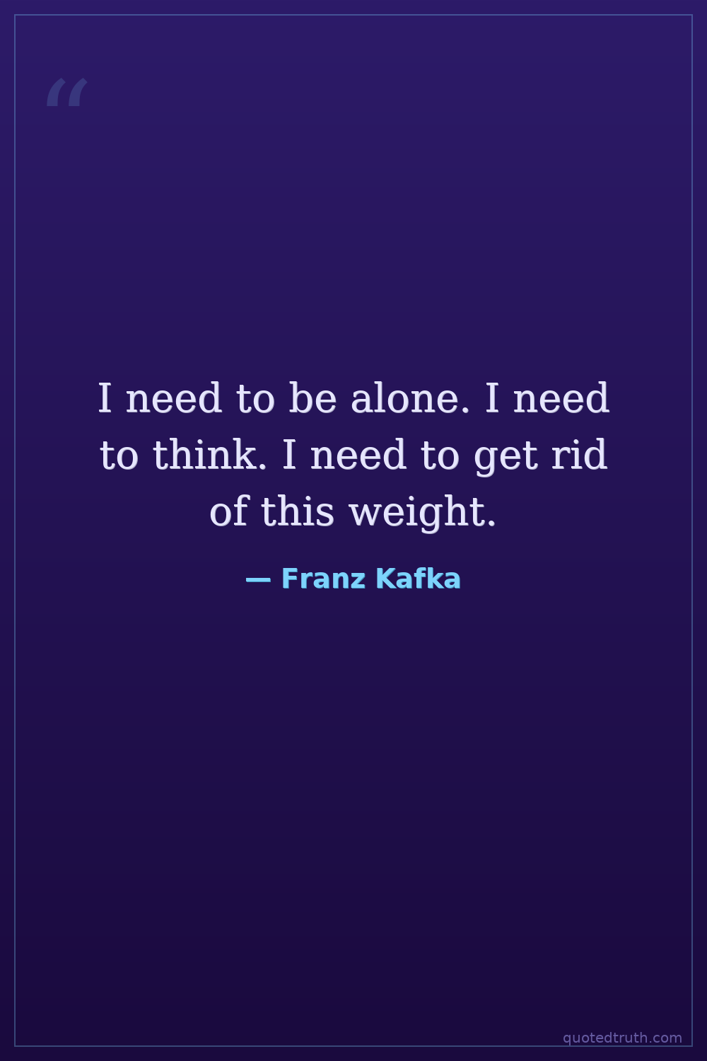 I need to be alone. I need to think. I need to get rid of this weight.