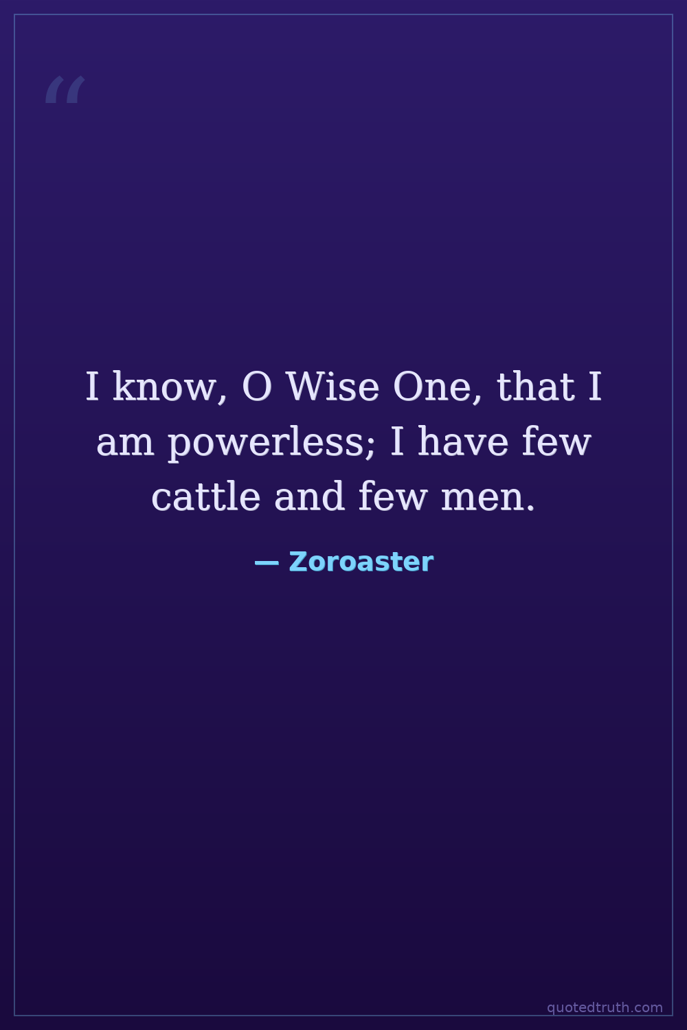 I know, O Wise One, that I am powerless; I have few cattle and few men.