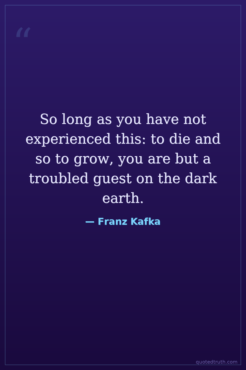 So long as you have not experienced this: to die and so to grow, you are but a troubled guest on the dark earth.
