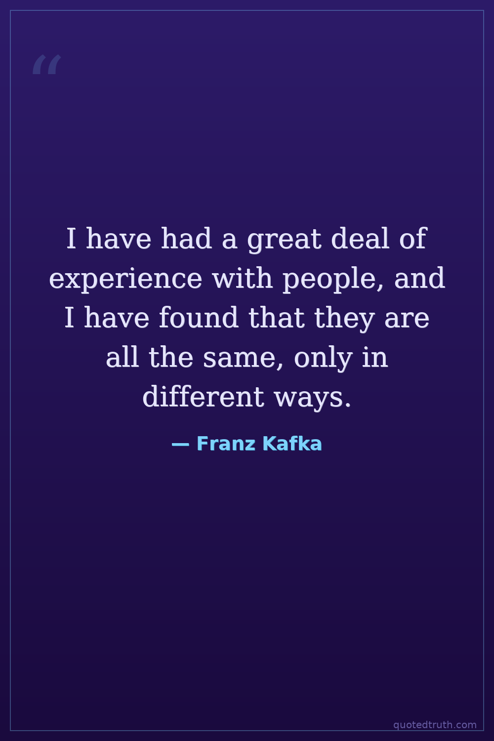 I have had a great deal of experience with people, and I have found that they are all the same, only in different ways.