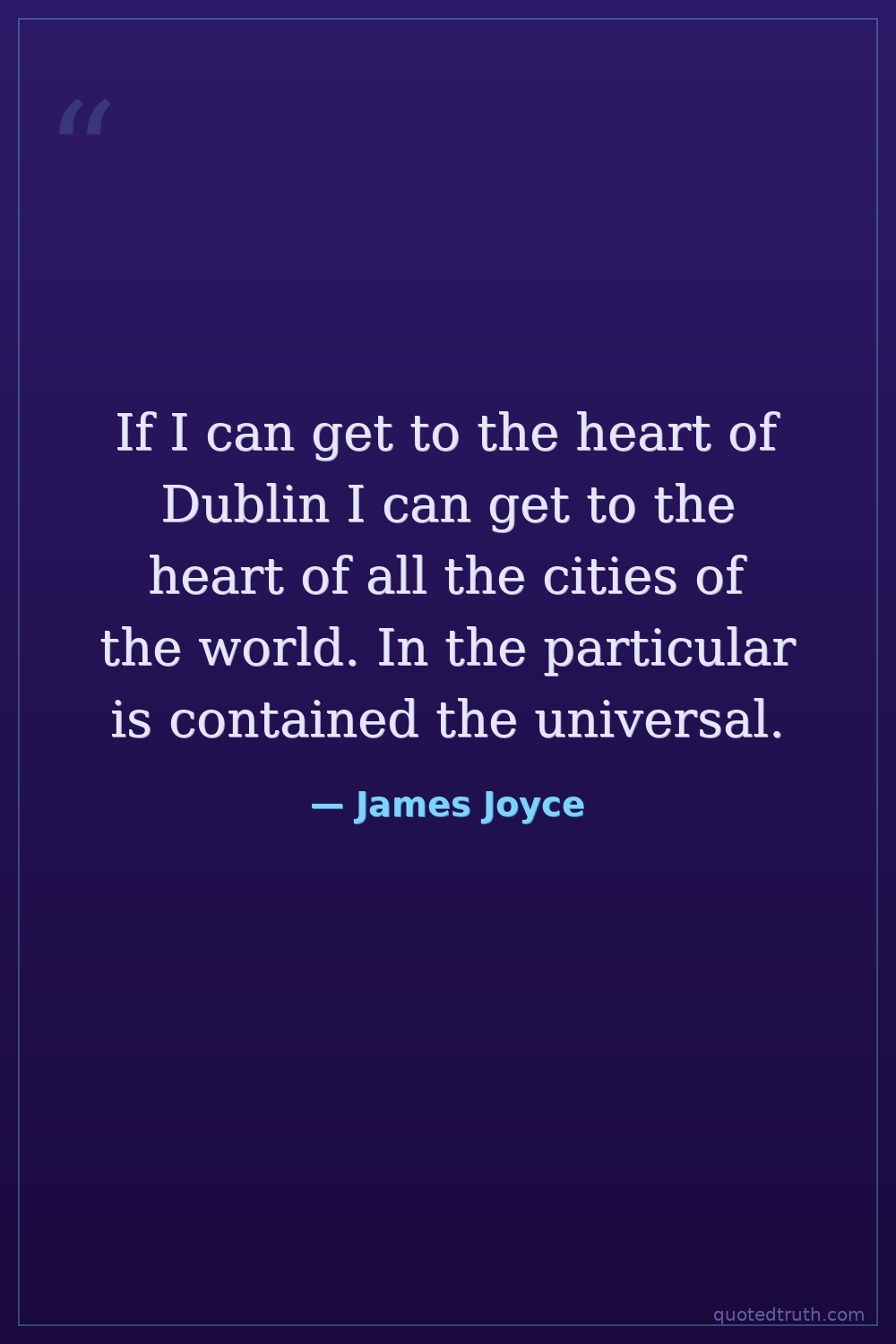 If I can get to the heart of Dublin I can get to the heart of all the cities of the world. In the particular is contained the universal.