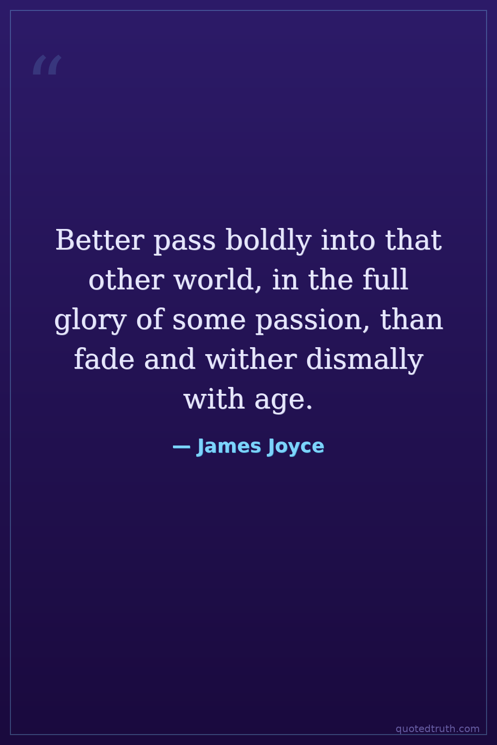 Better pass boldly into that other world, in the full glory of some passion, than fade and wither dismally with age.