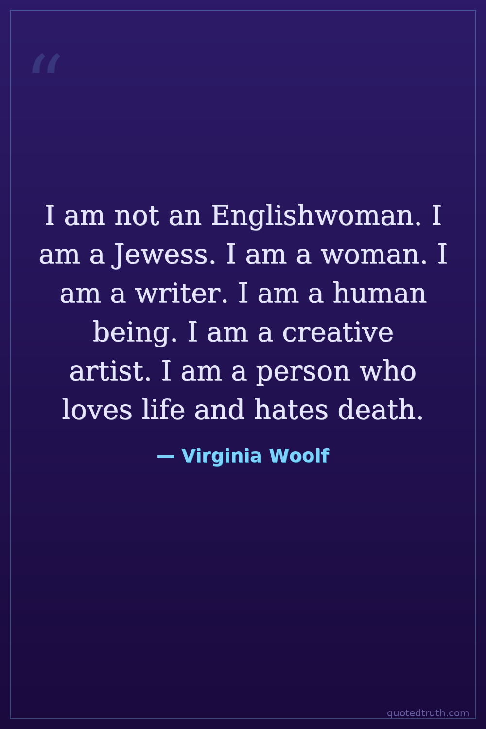 I am not an Englishwoman. I am a Jewess. I am a woman. I am a writer. I am a human being. I am a creative artist. I am a person who loves life and hates death.