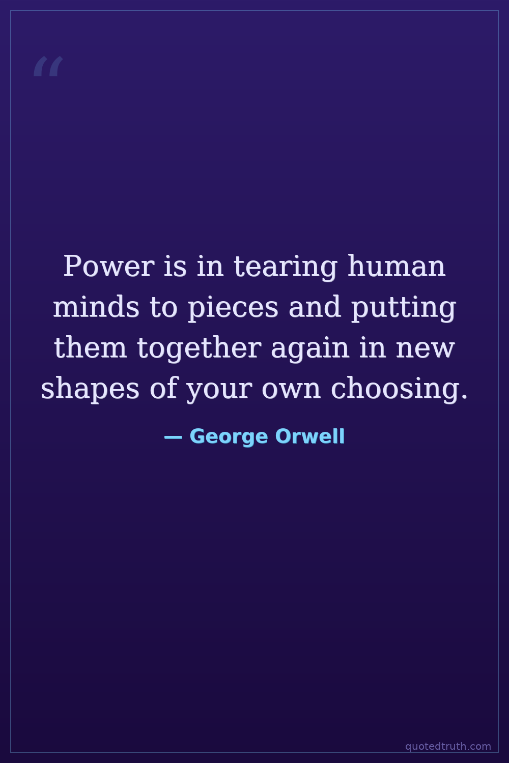Power is in tearing human minds to pieces and putting them together again in new shapes of your own choosing.