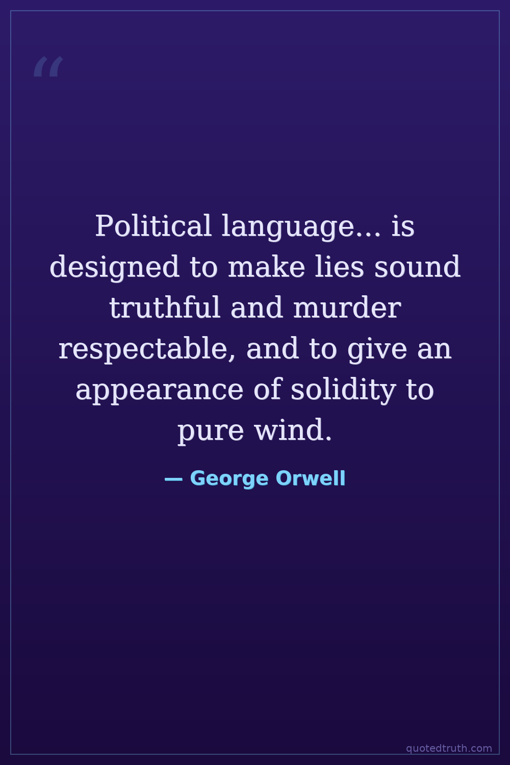 Political language... is designed to make lies sound truthful and murder respectable, and to give an appearance of solidity to pure wind.