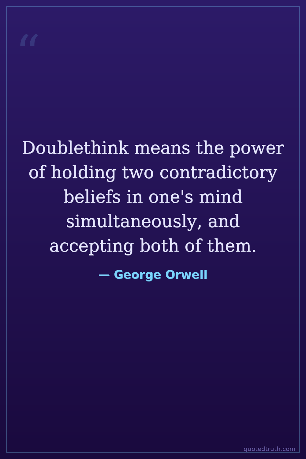 Doublethink means the power of holding two contradictory beliefs in one's mind simultaneously, and accepting both of them.