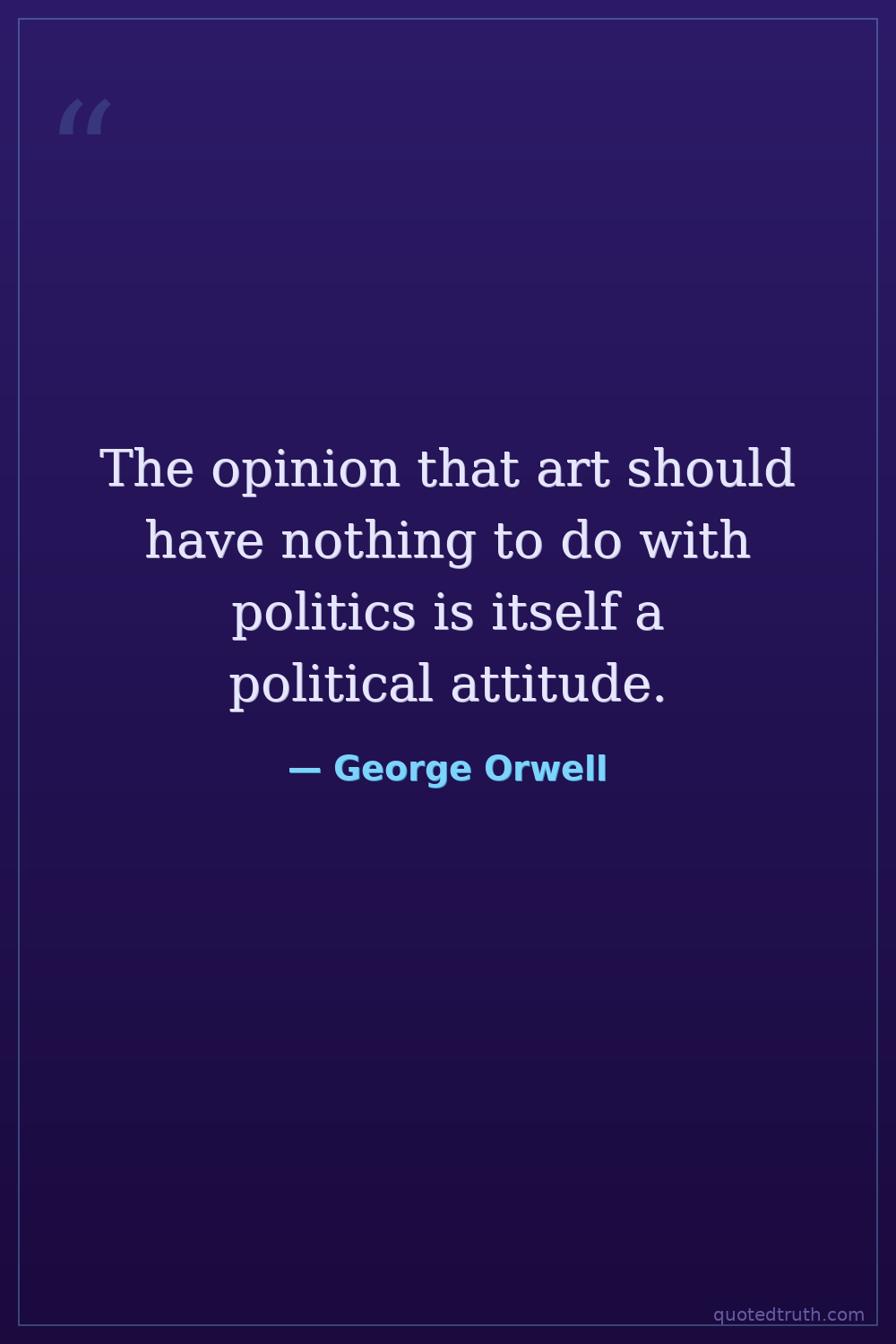 The opinion that art should have nothing to do with politics is itself a political attitude.