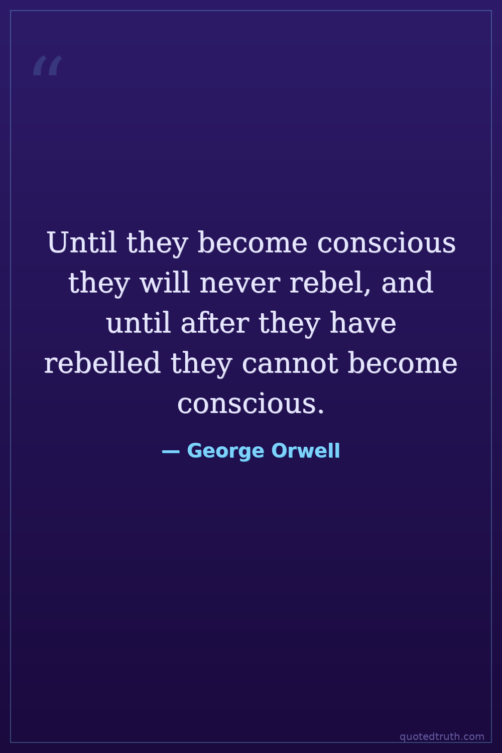 Until they become conscious they will never rebel, and until after they have rebelled they cannot become conscious.