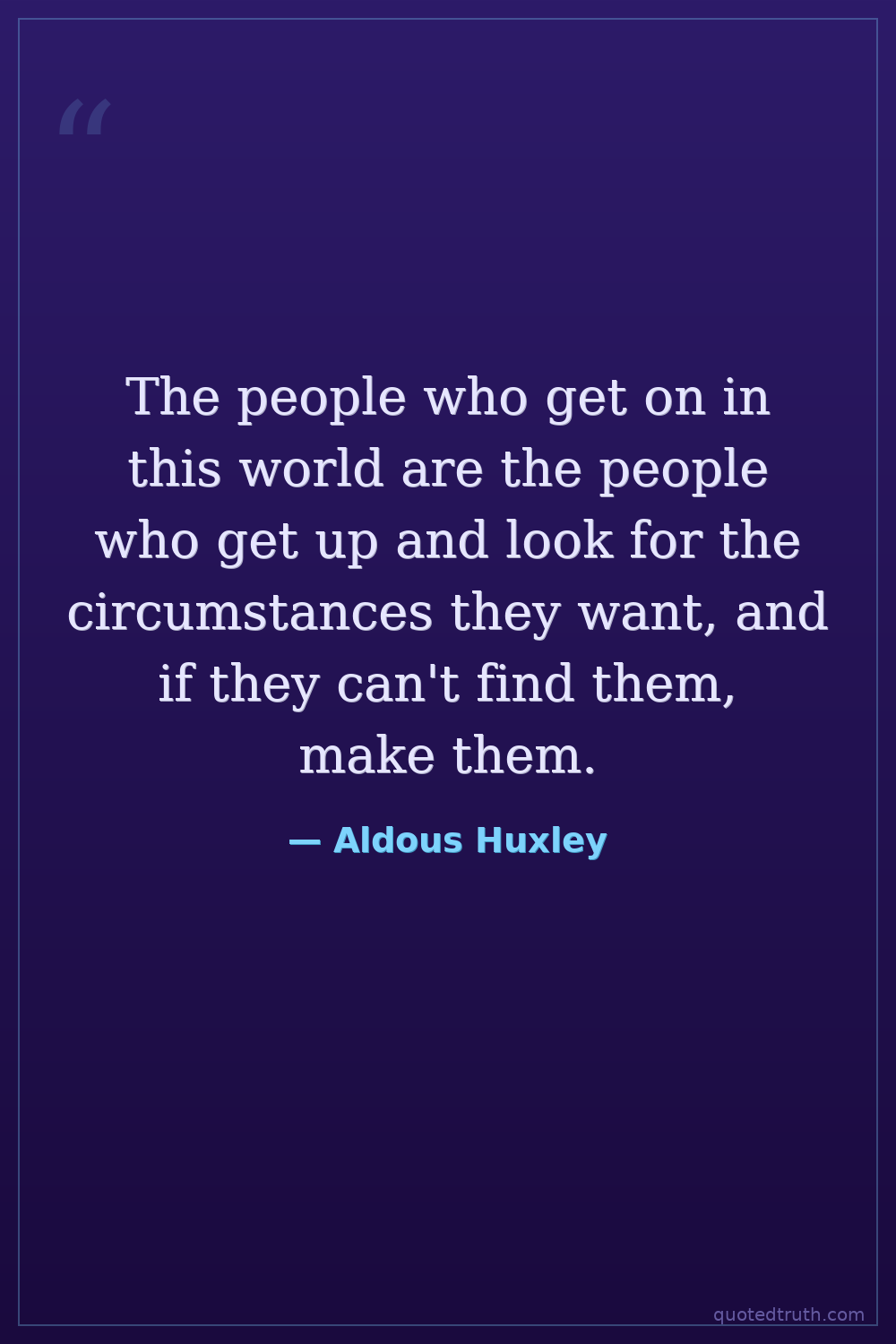 The people who get on in this world are the people who get up and look for the circumstances they want, and if they can't find them, make them.