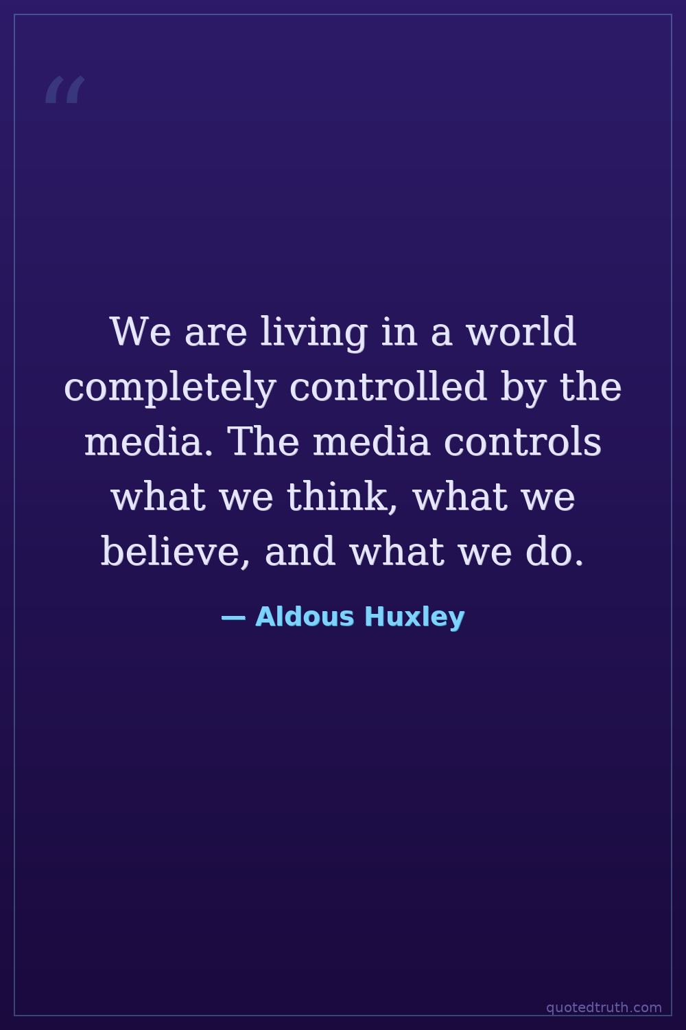 We are living in a world completely controlled by the media. The media controls what we think, what we believe, and what we do.