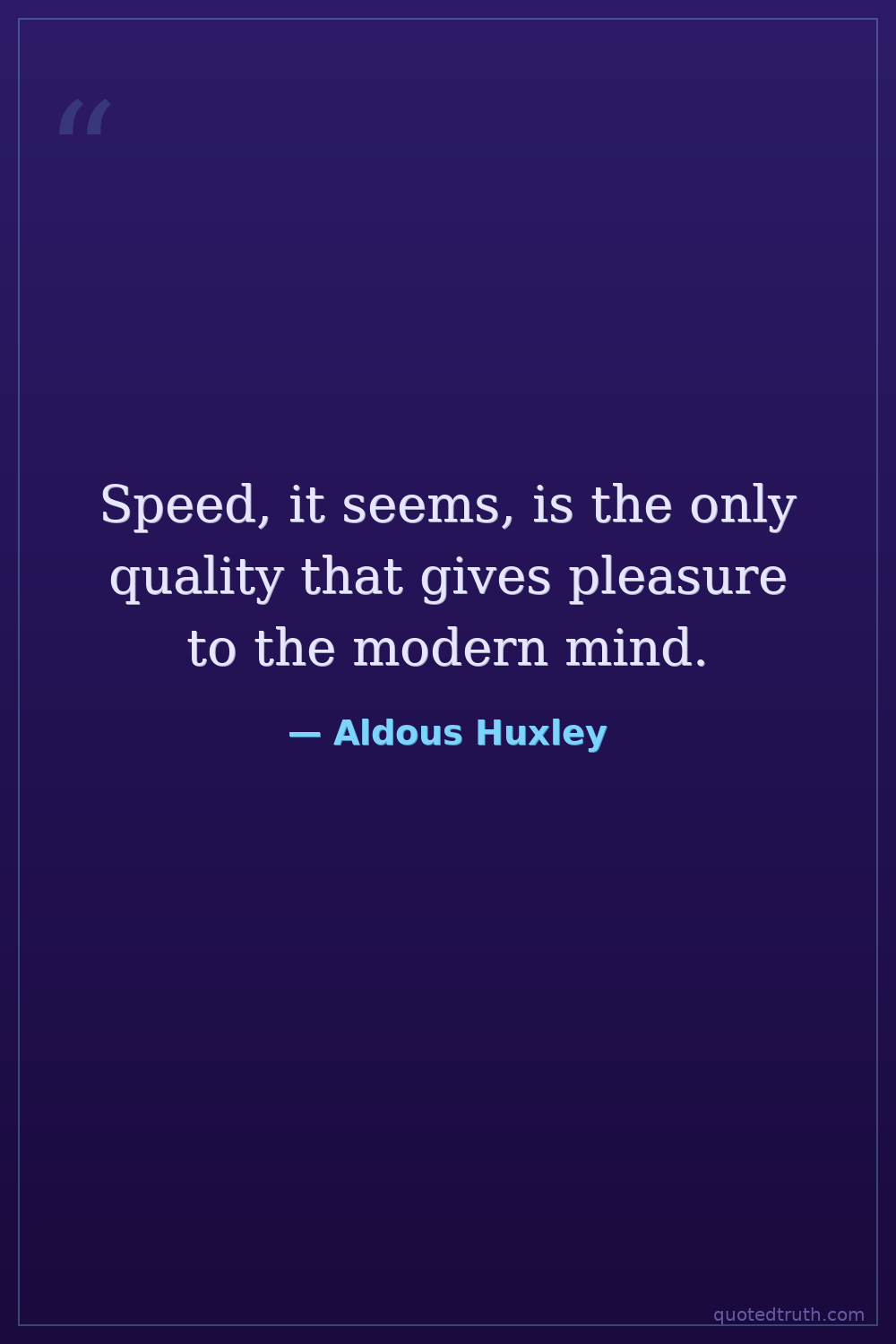 Speed, it seems, is the only quality that gives pleasure to the modern mind.