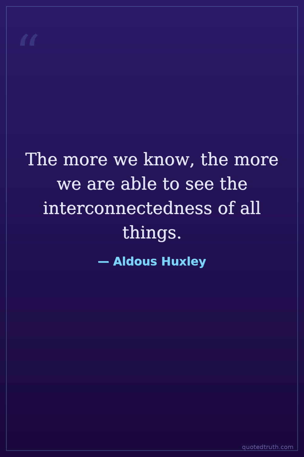 The more we know, the more we are able to see the interconnectedness of all things.