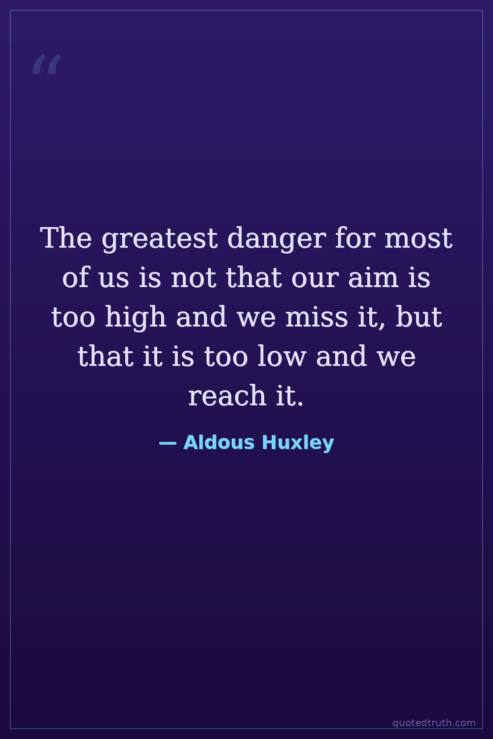 The greatest danger for most of us is not that our aim is too high and we miss it, but that it is too low and we reach it.