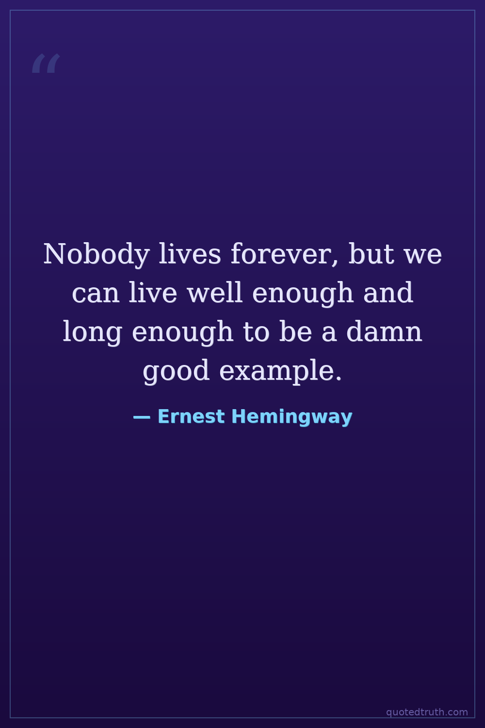 Nobody lives forever, but we can live well enough and long enough to be a damn good example.