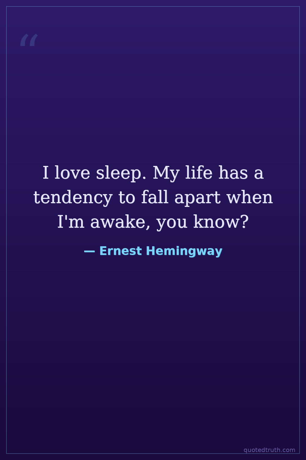 I love sleep. My life has a tendency to fall apart when I'm awake, you know?