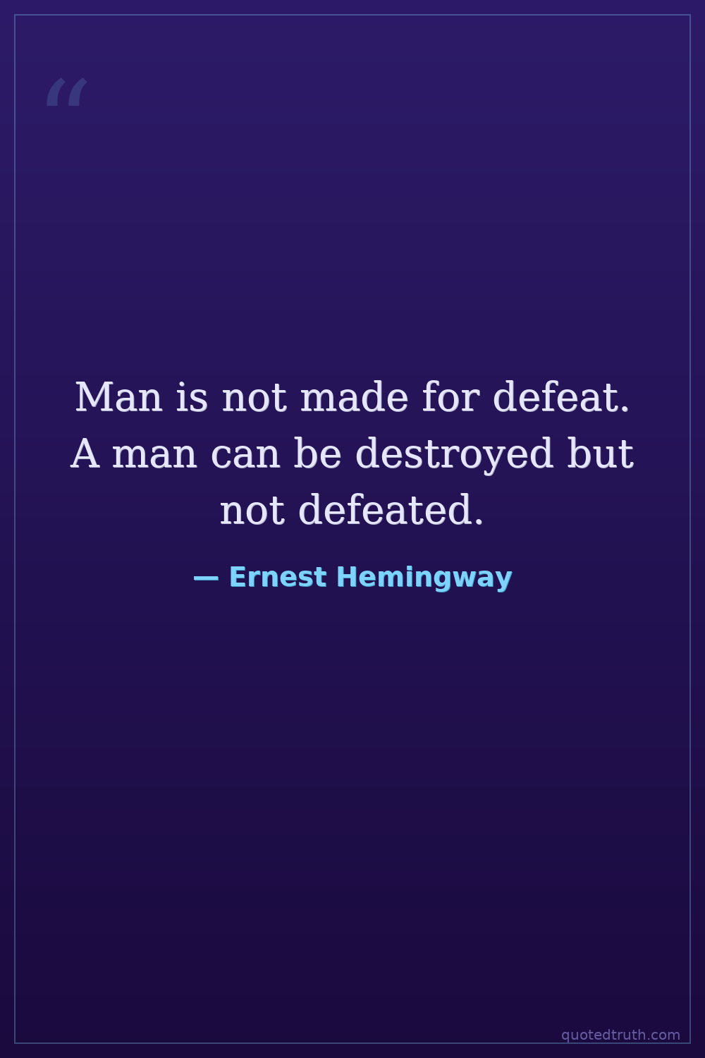 Man is not made for defeat. A man can be destroyed but not defeated.