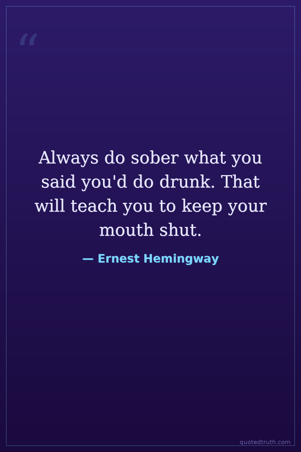 Always do sober what you said you'd do drunk. That will teach you to keep your mouth shut.