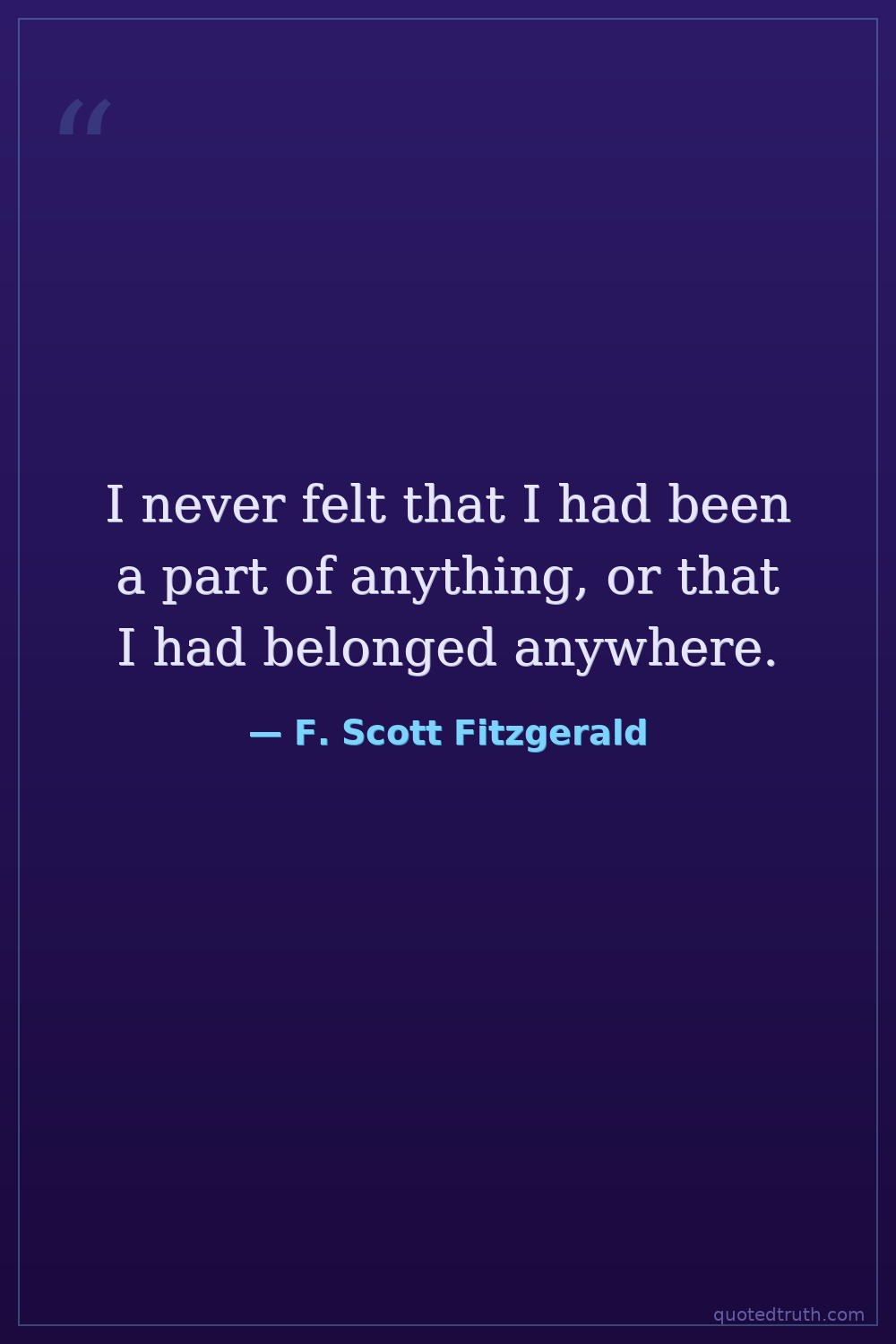 I never felt that I had been a part of anything, or that I had belonged anywhere.