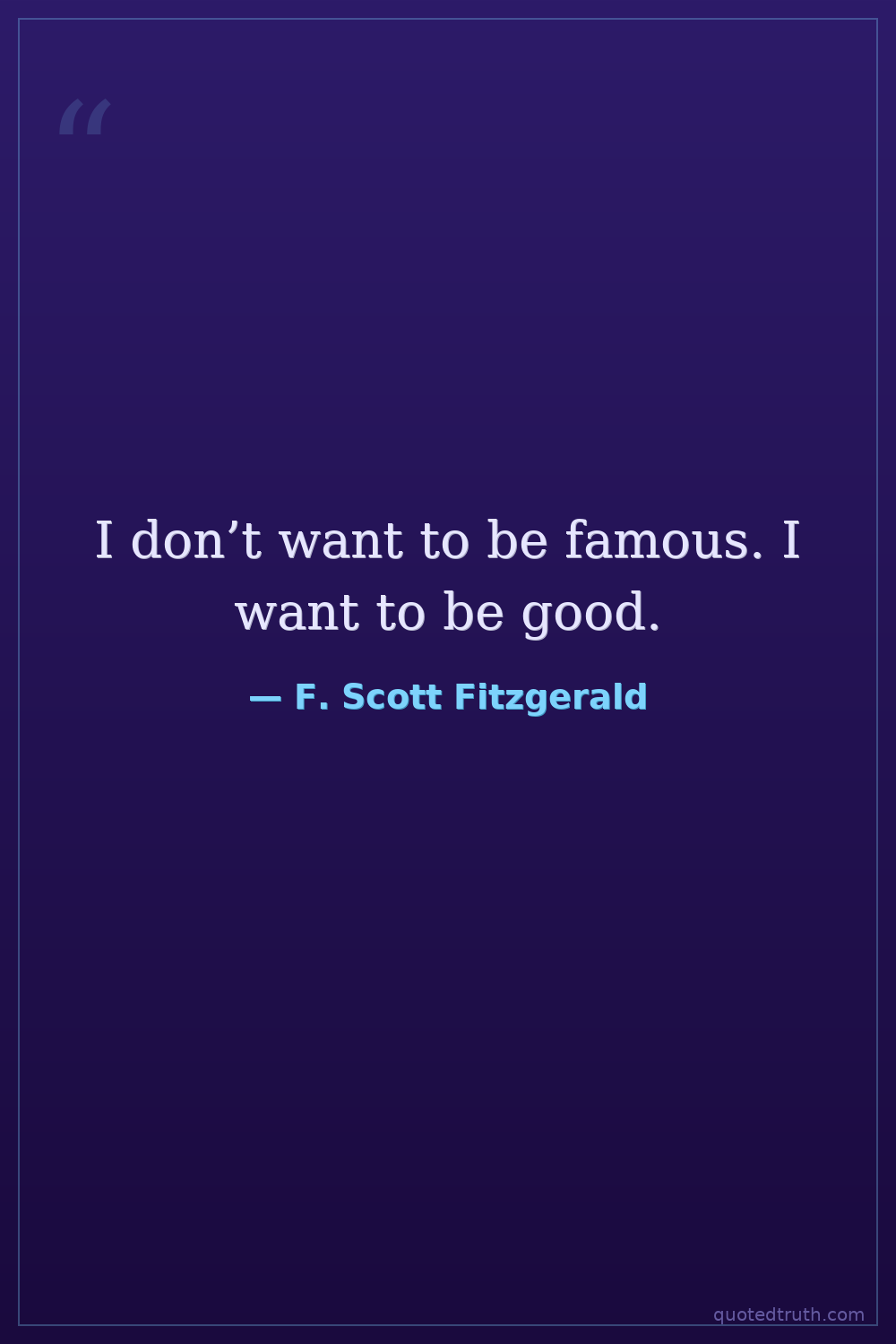 I don’t want to be famous. I want to be good.