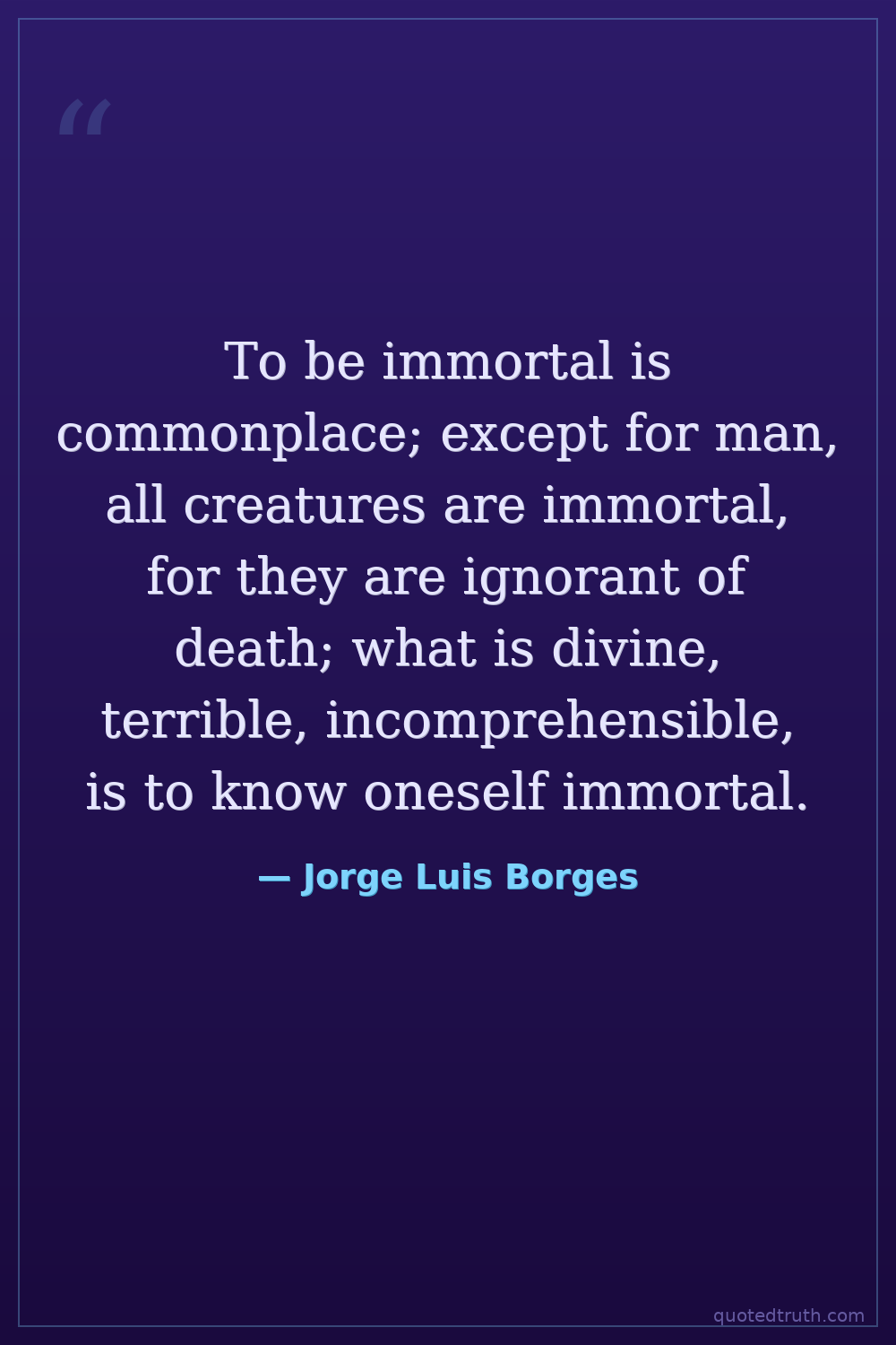 To be immortal is commonplace; except for man, all creatures are immortal, for they are ignorant of death; what is divine, terrible, incomprehensible, is to know oneself immortal.