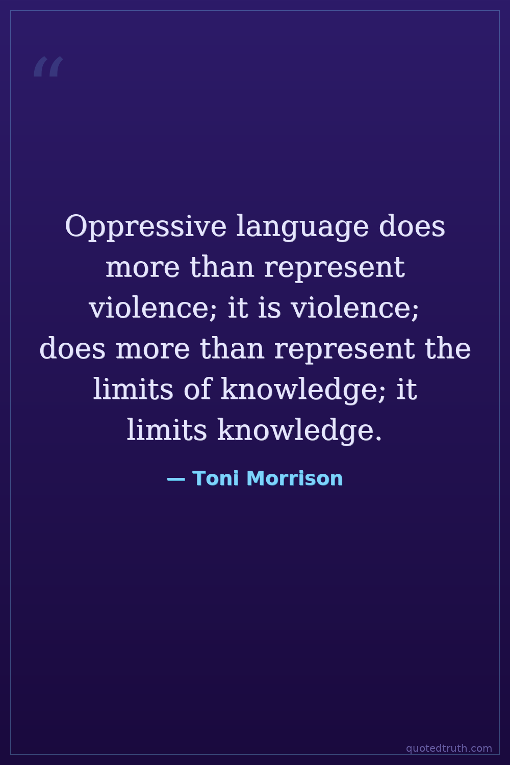 Oppressive language does more than represent violence; it is violence; does more than represent the limits of knowledge; it limits knowledge.