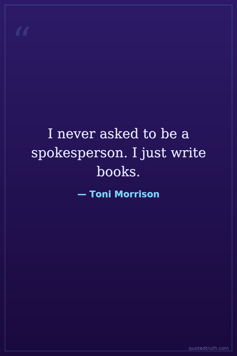 I never asked to be a spokesperson. I just write books.